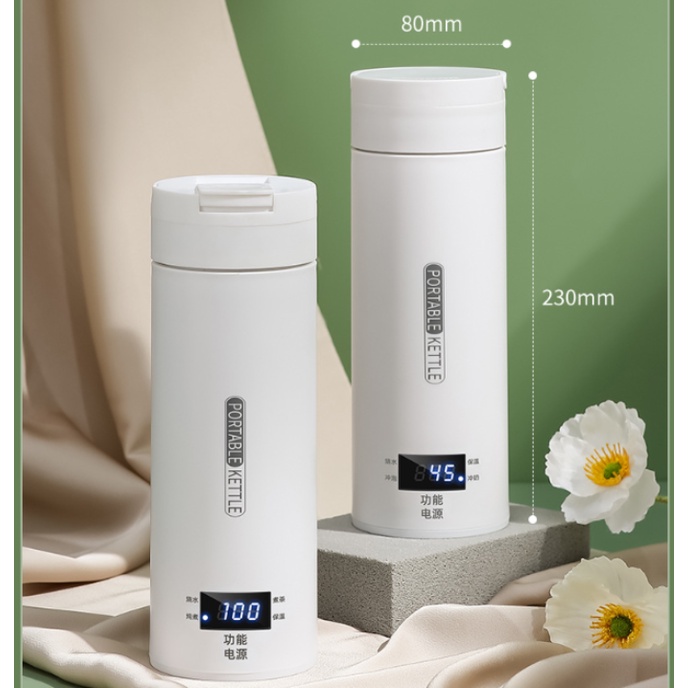 ??Ready Stock?? 500ml Portable Electric Kettle with LCD Display 4 pre-set Temperature/Stainless Steel Travel Mini Thermal Flask Heater
